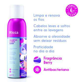 Shampoo a Seco Ricca Berry 50ml – Raiz Limpa e Cheiro Refrescante